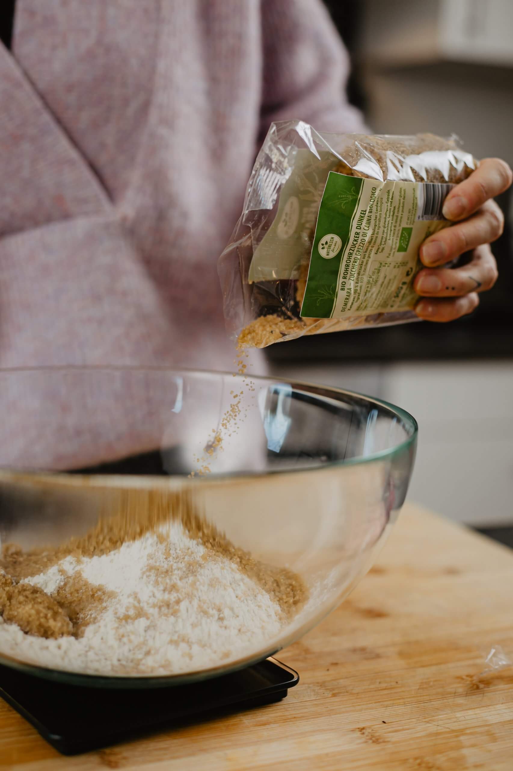 - Zucker, Mehl, Backpulver und Salz gut vermengen – es sollen keine Klumpen mehr sein.