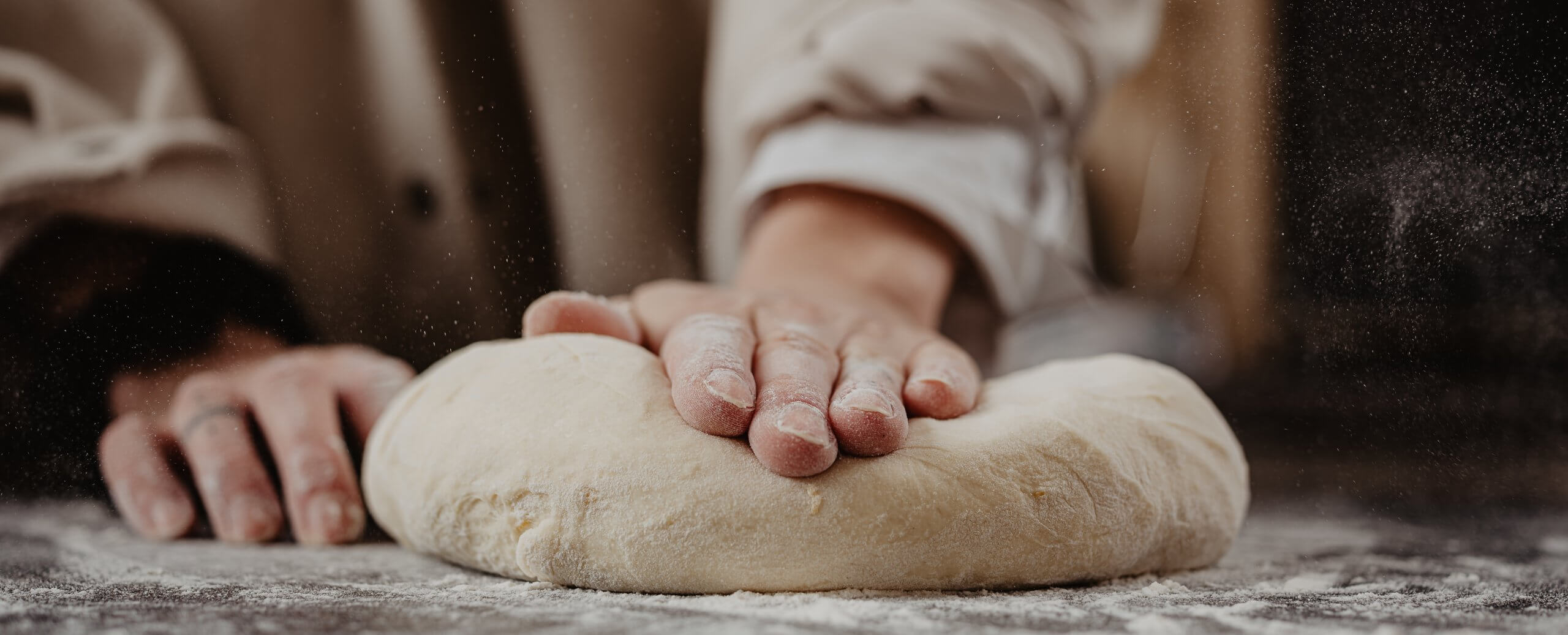- Den Teig nach der Gehzeit auf eine bemehlte Oberfläche geben, gut durchkneten und in 3 gleich große Stücke teilen.