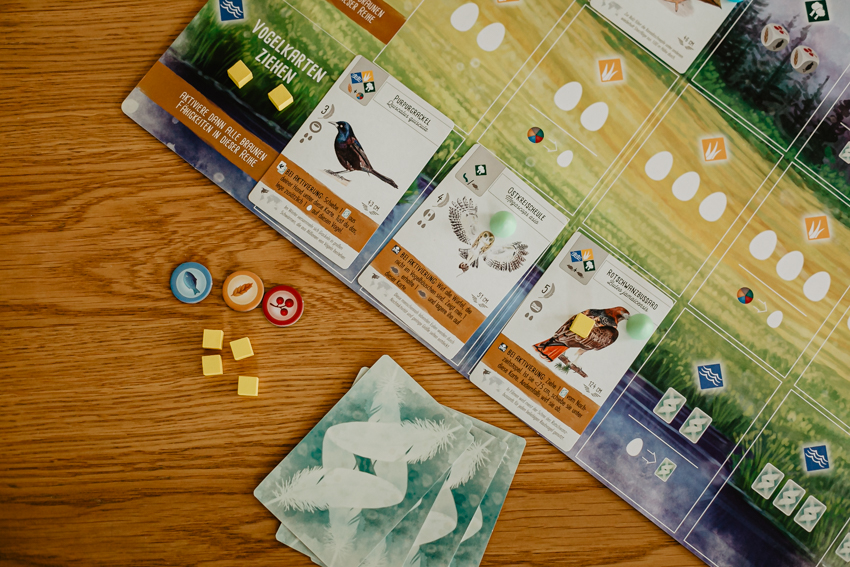 Thematisch ist man vorerst kurz abgeschreckt, das sollte man aber schnell vergessen. Auch wenn’s hier mal nicht um Zombies, Ritter und Monster geht, spielt sich Flügelschlag sehr spannend und durchaus kompliziert taktisch. Der Einstieg fällt sehr leicht, nach einigen Runden kommt man aber auf immer mehr Verbesserungsmöglichkeiten für die nächste Partie. Unglaublich stimmiges Design, sehr wertiges Material und eine thematische Umsetzung der Spitzenklasse lassen Flügelschlag zu einem Bestseller heranwachsen. Mit einem sogenannten „Bot“ lässt sich sogar die Solo-Variantel sehr gut spielen.